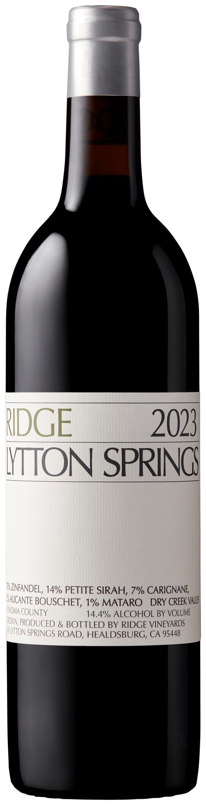 Information Ridge producerade sitt första Lytton Springs år 1972 från stockar planterade vid förra sekelskiftet på den östra delen av vingården. Under tidigt 1990-tal köpte Ridge både den östra och västra delen av vingården – som ursprungligen utgjorde ett och samma egendomskomplex under 1870-talet, när “Captain” William Litton ägde marken (stavningen ändrades till ”Lytton” omkring 1903). Vingården är planterad främst med Zinfandel och dess klassiska kompletterande druvsorter. Druvorna till Lytton Springs kommer ifrån vingården med samma namn inom AVA Dry Creek Valley